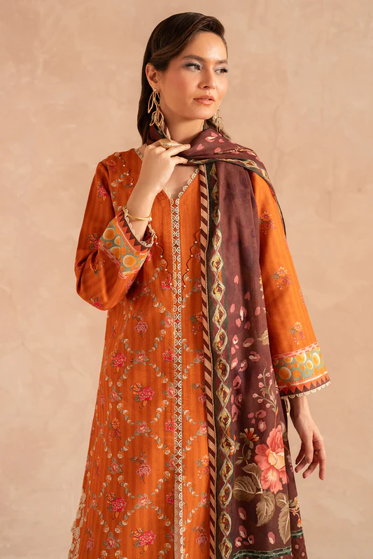 Embroidered Digital Printed Khaddar Shirt with Digital Printed Trouser and Dupatta